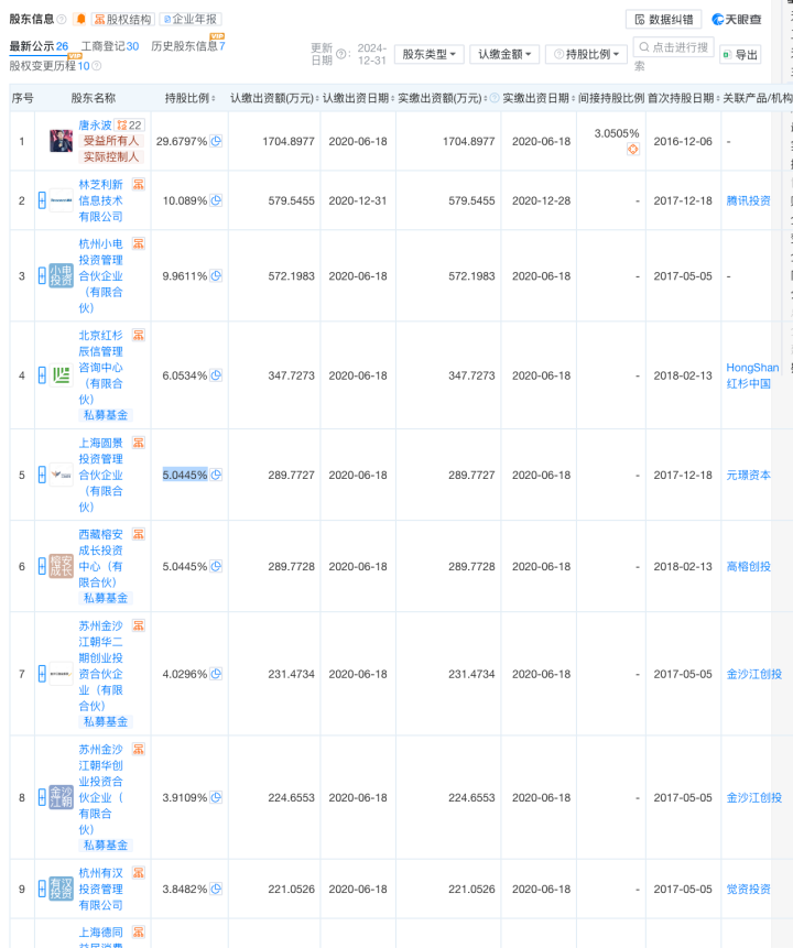 成立至今,小电科技吸引腾讯、红杉、金沙江创投等持续投资。天眼查App信息显示,小电科技创始人唐永波持股29.6797%;腾讯投资持股10.0890%,系最大外部股东;金沙江创投合计持股7.9405%;红杉中国持股6.0534%;元璟资本合计持股6.2979%;高榕创投持股5.0445%。